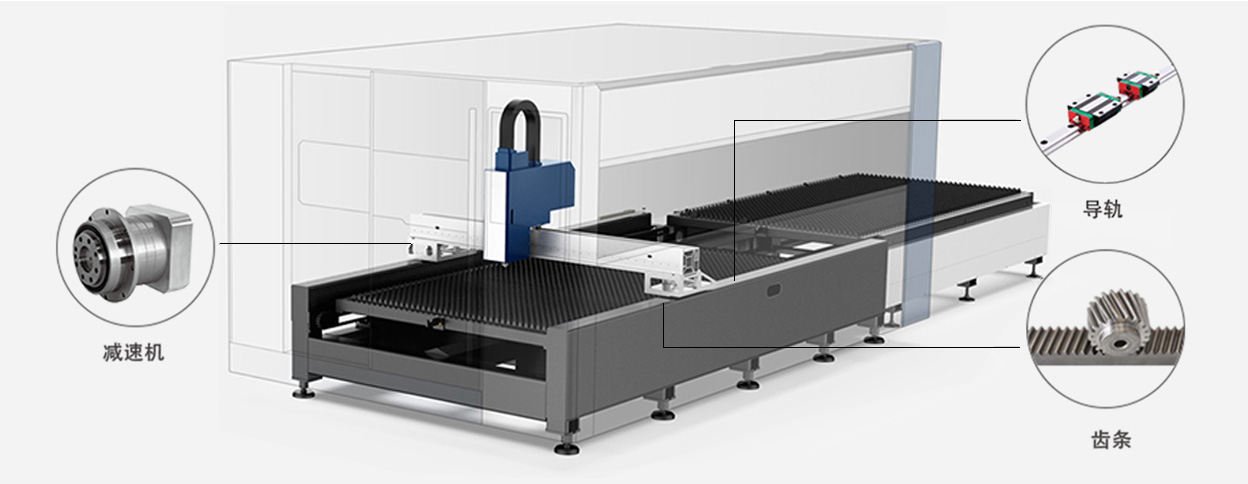 ■采用知名品牌台湾YCC的斜齿齿条,台湾上银(HIWIN) 的30导轨,德国西门子的电子器件,使用日本松下或安川的驱动电机,保证了机器的工作精度。
