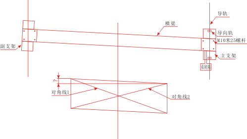 4.量取两个对角的长度,看他们之间是不是相等,如果不相等就说明机器的横梁没有放正。需要继续调节对角线。看它们之间差几个毫米,正常误差要控制在0.5mm.