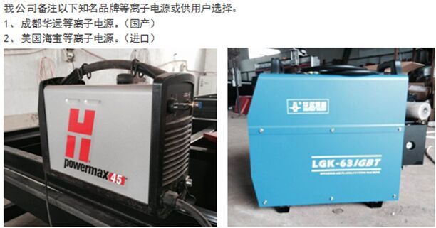 机器横梁采用台湾进口双轴心导轨,并配有防尘罩保护。等离子调高体为铝合金结构,减少横梁负载,调高轴为高碳钢棒,硬度高耐磨。等离子配套接口装有等离子防撞装置,对等离子割枪提供安全保护。同时配有等离子切割喷水装置,在切割时能实时对切割点喷水,起到提高切割效果,减小热变形的作用。